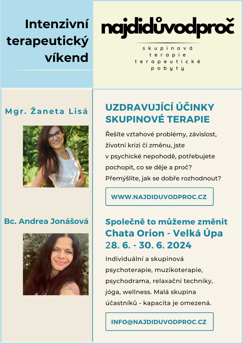 více informací a rezervace víkendového terapeutického pobytu klikněte zde: najdiduvodproc.cz